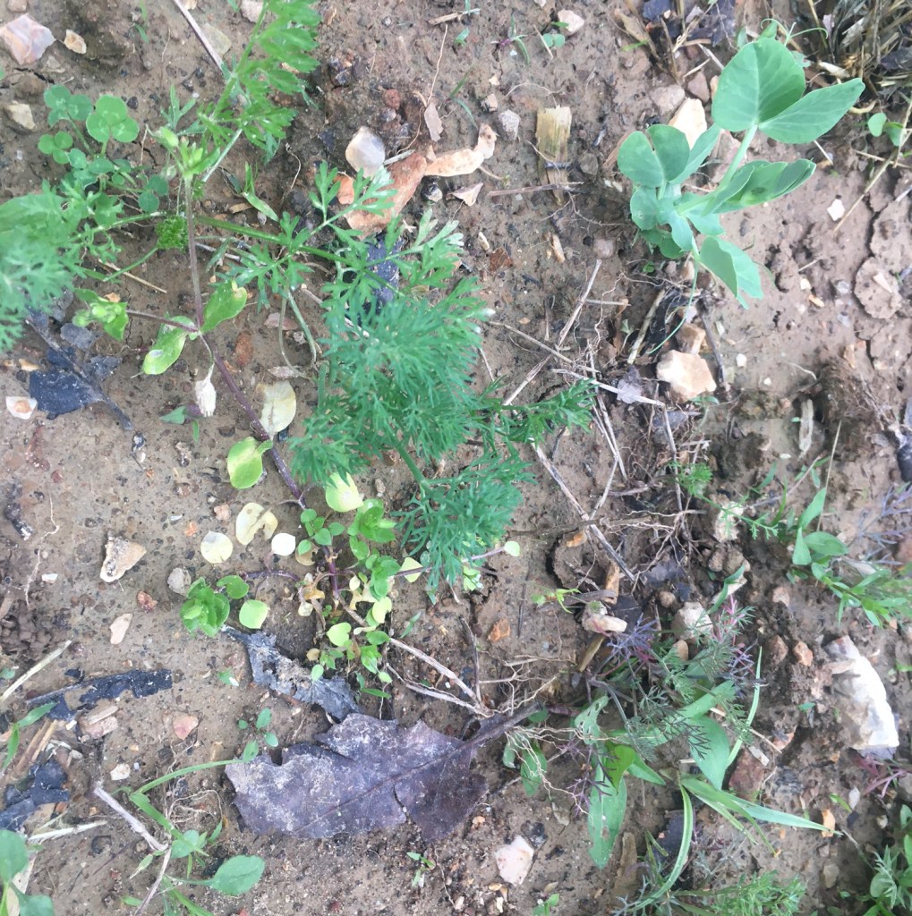 I also have some lettuce and radish seeds that seeded themselves and in a day or two, I’ll be able to make a salad from these early vegetables.